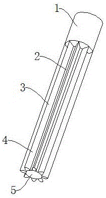 如圖1和圖2所示,齒條4成型于芯桿5以及連接桿1上,齒條4為實現(xiàn)該齒輪轉(zhuǎn)動的主要結(jié)構(gòu)。